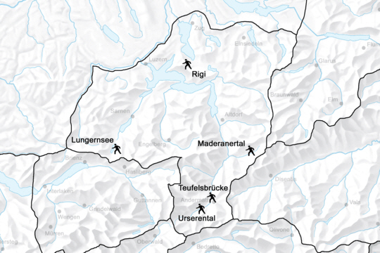 Teufelsbrücke - a lot of history and impressing; Maderanertal - lonesome and mystic; or the Rigi with the great view on the seascape - famous worldwide.