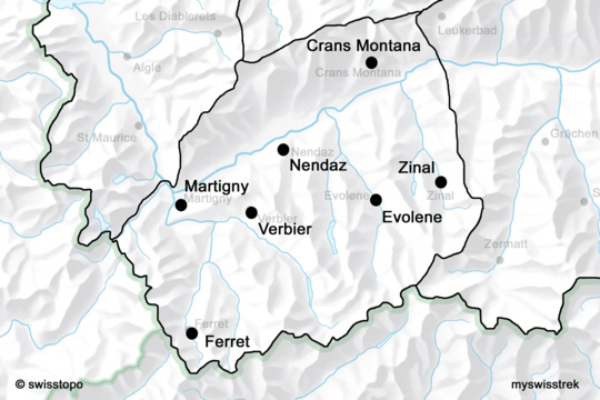 famous holiday cities, elevated above the Rhone valley or a the end of a mountain valley at the foohills of 4000ers.
