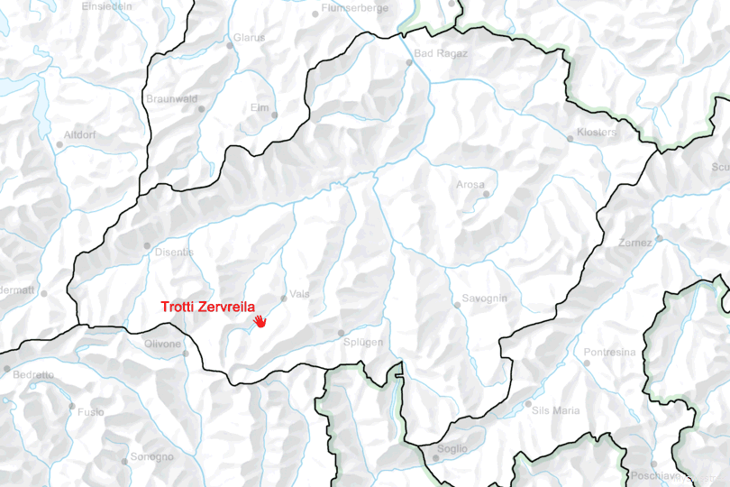 Du fährst 8 km vom Stausee bis nach Vals hinunter auf einer Bergstrasse mit einer Höhendifferenz von 580 m. Dauer ca 45 Minuten. Entlang einer Schlucht und durch Tunnels. Achtung Gegenverkehr (Autos).