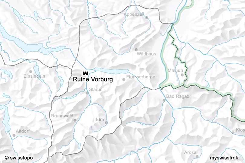 mittelalterliche Burgruine der Habsburger am Eingang zum Glarnerland