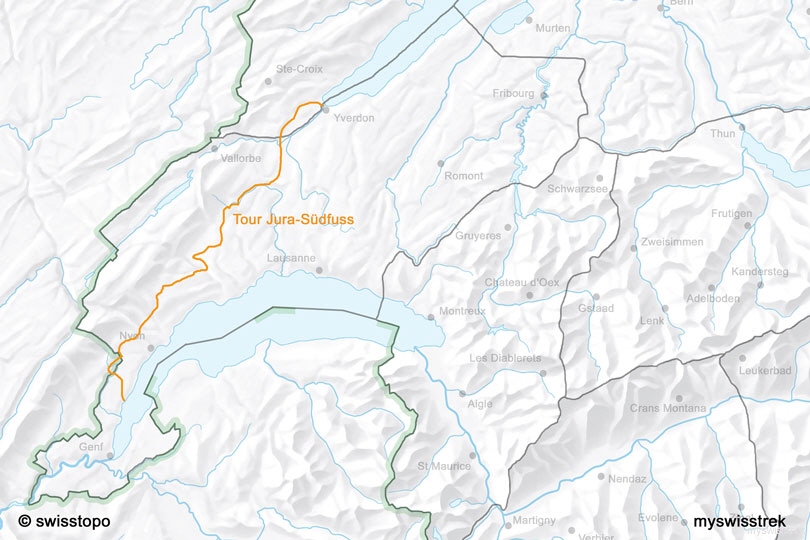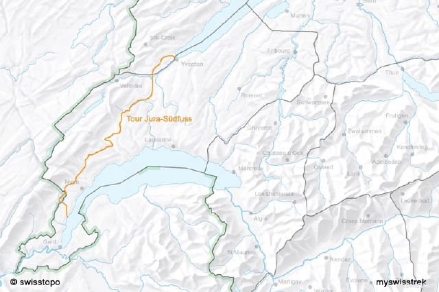 Strecke: Genf - Crassier - La Cezille - le Vaud - Gimel - Biere - Ballens - Orbe - Yverdon